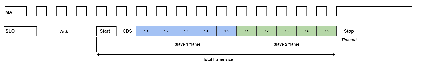 To correctly parse the frames, the following parameters must be configured correctly and independently for each slave