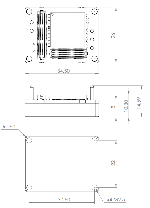 All dimensions are in mm. All tolerances ≤ ±0.2 mm