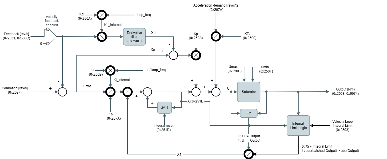 Velocity loop integral value is the integral accumulator value (xi).