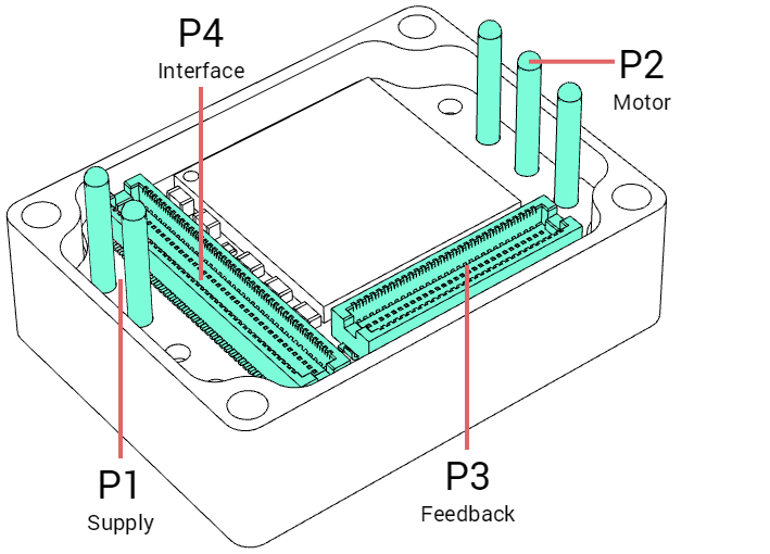 Chassis | PE | Protective Earth connected to driver housing and fixing M2.5 threads. | Ensure basic insulation (Min > 0.5 mm) between protective earth and other live circuits. | |