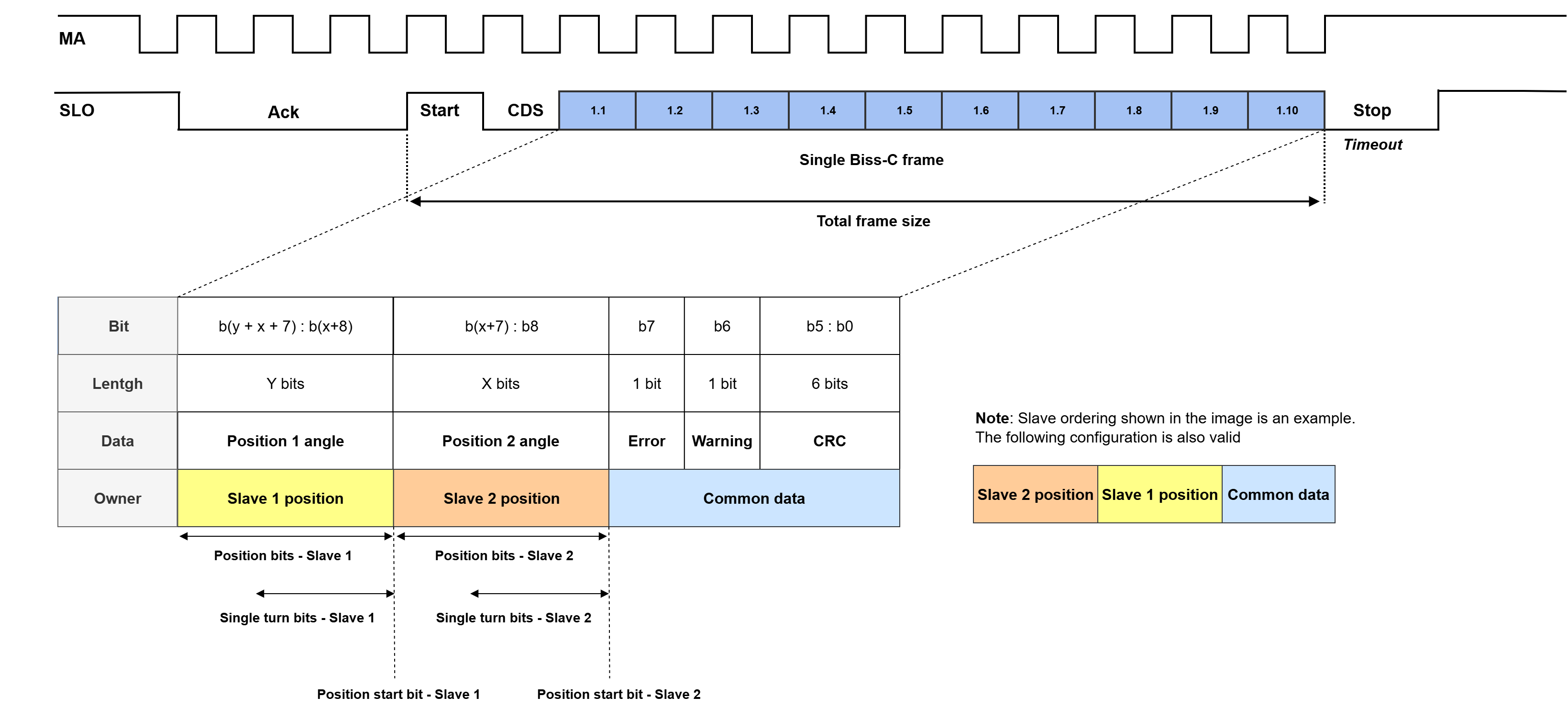 The following picture shows an example of a BiSS-C daisy chain frame.