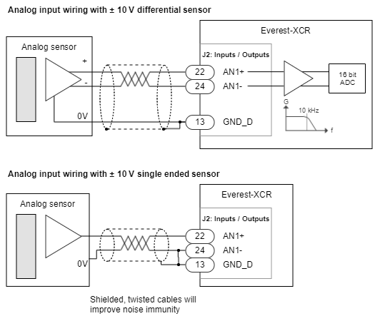 - 1x ±10V differential 16 bit analog input (AN1+, AN1-)