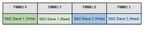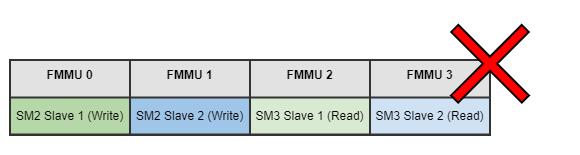 LRW access to non-interleaved input and output process data of multiples slaves does not work. SOEM accesses slaves in LRW mode this way. |