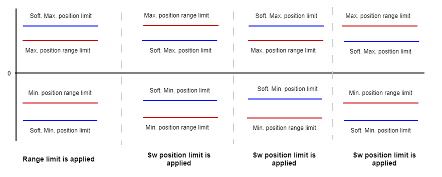 If software position limits and position range limits are enabled, the more restricted is applied. Software position limits are chosen in case of conflict: