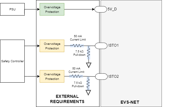 The following conceptual diagram summarizes the external requirements for the STO inputs and Logic Supply