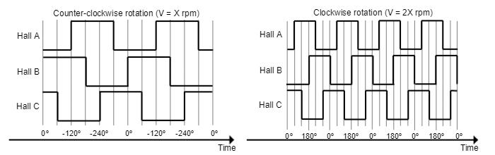 Next figures show the typical waveforms of the digital Halls signals.