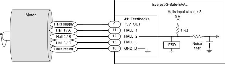 Next figure illustrates how to connect the digital Halls to Everest S Safe EVAL and a simplified input schematic.