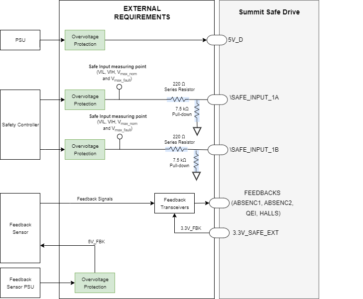 External Requirements for Safe inputs, Feedback Interface and Logic Supply