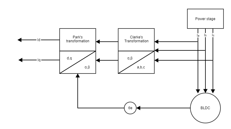 The current actual value is obtained from the module of the components direct and quadrature and it represents the total amount of current driven by the drive to the actuator.