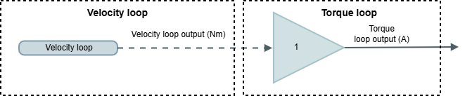Torque estimation is based on current measurements. Velocity control loop is directly connected to current control loop. Therefore the current control scheme is the same as the used on Current modes. A current limit block is available to protect the system in front of high commanded currents or the excessive amount of energy accumulated (I2T).