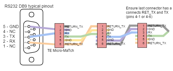 - On the last device, connect TX and RETURN_TX (lines 4-1 or 4-6).