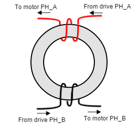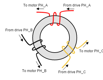 - An excessive number of turns causes a high capacitive coupling. Only 2 or 3 turns per motor phase are recommended.