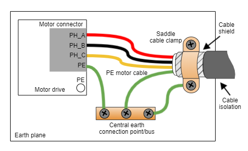Moreover, a proper connection to PE prevents many of the electromagnetic compatibility (EMC) problems that occur operating a servo drive. Please check this document Electromagnetic Interference Issues With Servo Drive Systems.
