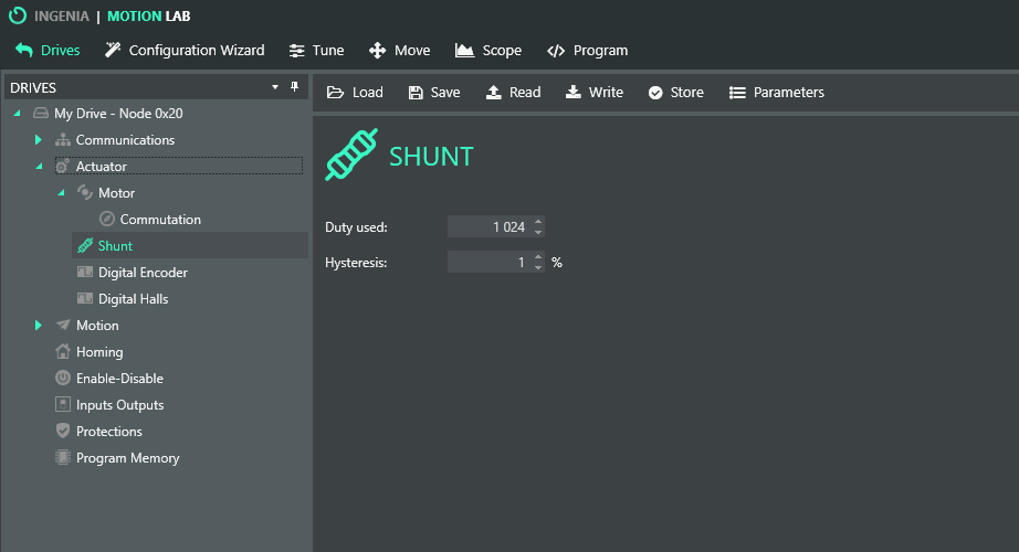 Configuration of the shunt parameters of the drive