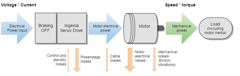 During normal operation, the servo drive receives electrical power from a DC bus supply and outputs a controlled electrical power through the phases of the motor. Then the motor converts this electrical power to a mechanical power that moves the load: