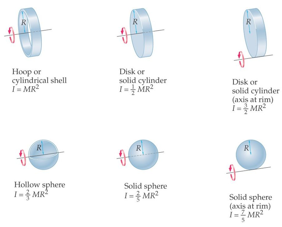Moment of inertia for various shapes