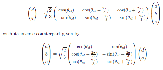 When using the power invariant D-Q model, the Ke and Kt parameters must be re-defined. The proceeding is the same as used before, equalling mechanical and electrical power.