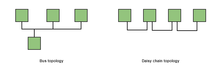 The topology of the network | In applications where latency and determinism is a critical point, it is important to take a look at the different topologies of the market field bus protocols. For example, bus topologies are typically worse in terms of latency than daisy-chain ones. The main problem of bus topologies is that it usually requires some kind of arbitration to gain access to the channel, whereas in daisy-chain topologies one device could potentially have full control of the channel (usually the master). On the other hand, daisy-chain topologies allow using a single message for all the devices and process it "on the fly". That means that each device modifies its section of the whole transmitted message in the same network cycle the message has been sent. EtherCAT uses this daisy-chain topology precisely. The EtherCAT master is the only one that can initiate a transmission in the network. This message is transmitted through all the slave nodes which process the message on the fly. |
