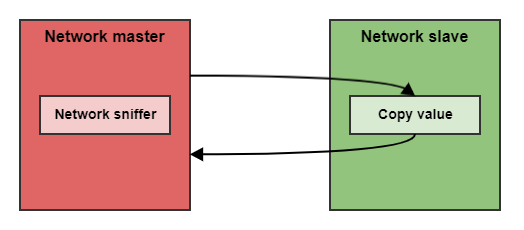 The slave copies the received value into another message, which returns to the master.