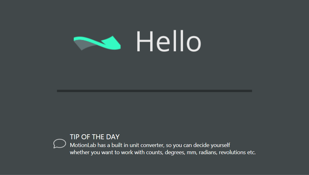 While loading MotionLab will detect any drives connected to your computer through a compatible interface. Useful tips are shown at the bottom of the window.