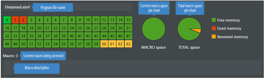 Below the toolbar, user can find information on the macro structure as follows: