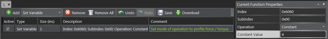 This macro reads the current mode of operation (Get) and 'Set' it to profile torque.