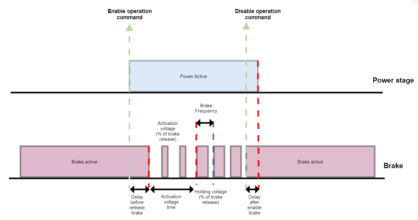 - Delay after enable → Time delay applied after activating the brake (ms)