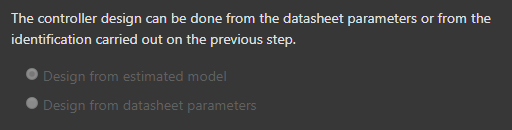 Depending on the identification method used on previous page, Electrical tuning: identification, you should select the model you want to use to design your controller.
