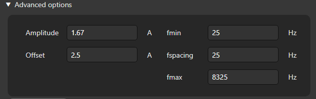 Some very specific applications might require changing the excitation parameters. This can be done through the Advanced Options.