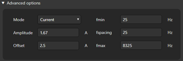 Some very specific applications, might require changing the excitation parameters. This can be done through the Advanced Options.