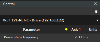 The control widget allows you to change the power stage frequency. The power stage frequency affects on identification especially when comes to low inductance motors. You can find further information, click here