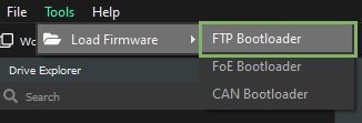 1. Navigate to "Tools" → "Load Firmware" and select the FTP Bootloader: