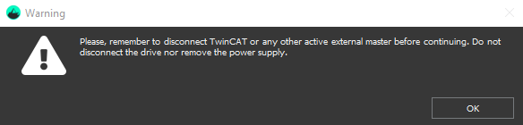 5.TwinCAT or any other active external masters should be disconnected. This is why MotionLab asks for this action before continuing: