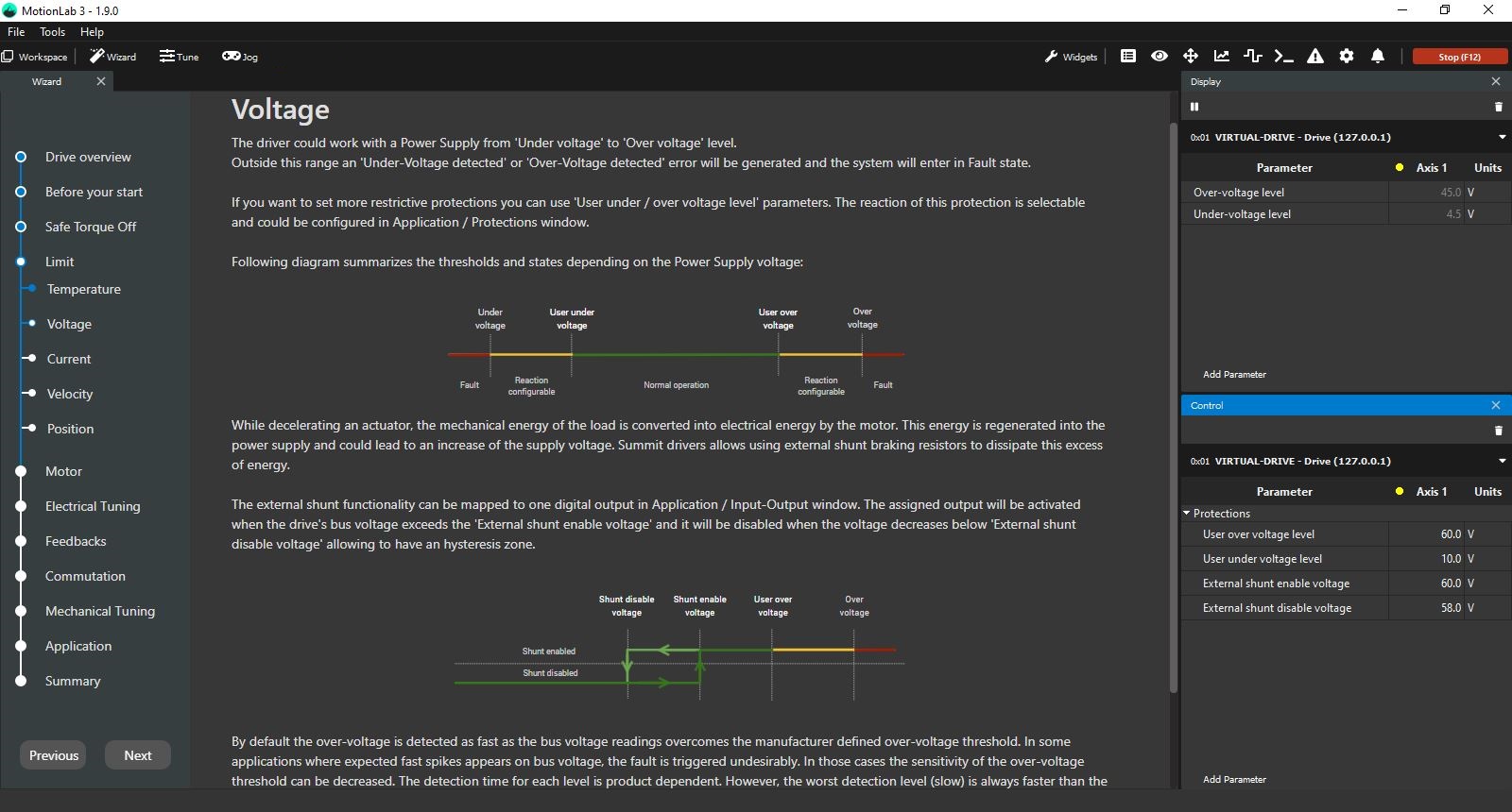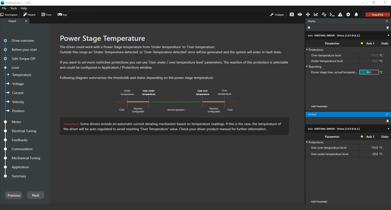 If you are interested in learning more about the parameters configured in this step, please refer to the firmware manual documentation: Drive protections