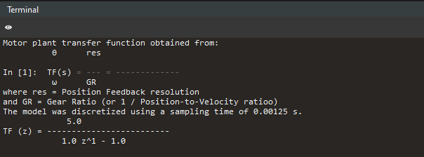 In addition, you will notice the Terminal shows the transfer function that plots comes from.