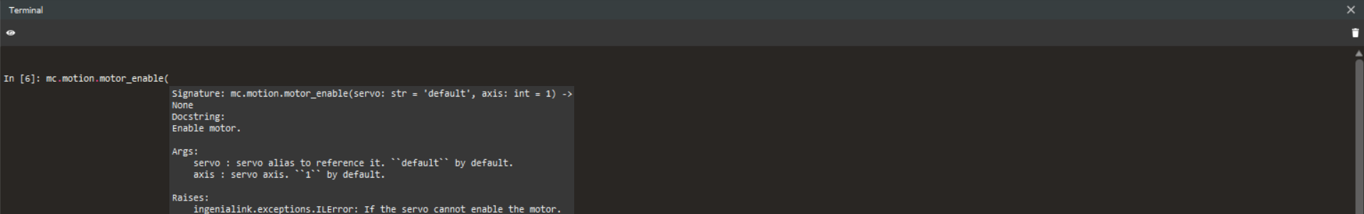 For example, enabling the motor can be done by calling an ingeniamotion function in the motion namespace:
