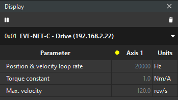 Monitoring is not supported by EVE drives through CANopen or CoE communications. Therefore, in order to carry out Mechanical Tuning please connect to the drive via Ethernet. The feature is supported on EVS.