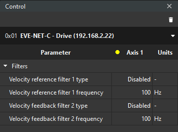 If you consider you need to include a reference filter or a feedback filter, you can set up on the Control widget. You can find further information about these parameters at Filters and offset section.
