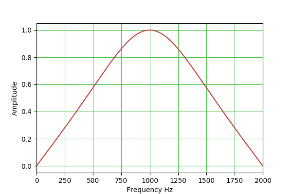 Amplifies center frequency by a specific gain. The surrounding frequencies are also amplified. It can become sharper with a higher quality factor. In this example, the center frequency is 1000 Hz.