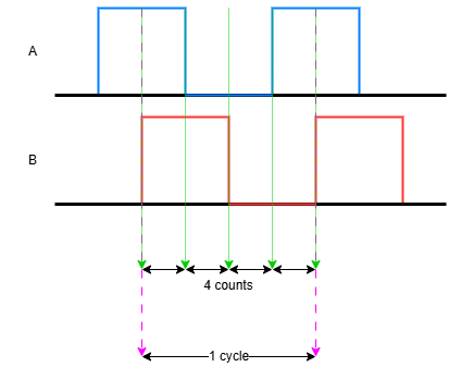 This register counts each transition of the A and B signals from the incremental encoder. Some datasheets for incremental encoders specify the number of periods per revolution. In such cases, the user should apply a factor of four to this register.