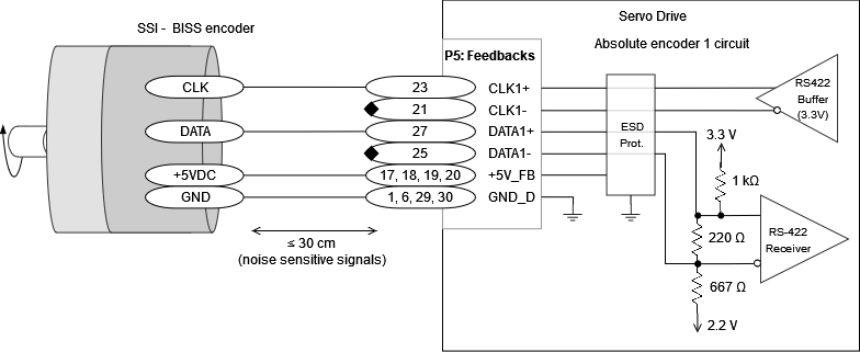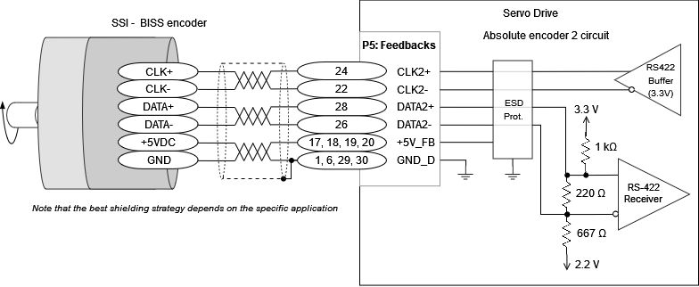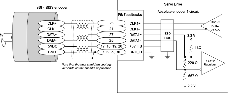 Next Figure shows how to connect a single SSI or BISS-C absolute encoder to the Servo Drive.