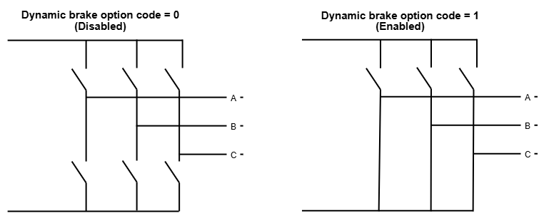 Dynamic braking can be configured using 0x262E - Dynamic brake option code