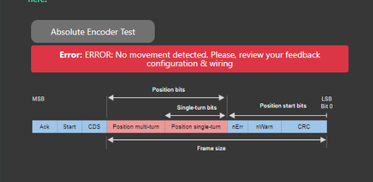 Encoder configuration. Please check that the encoder register configuration is correct. Please use the advise here: Feedbacks.