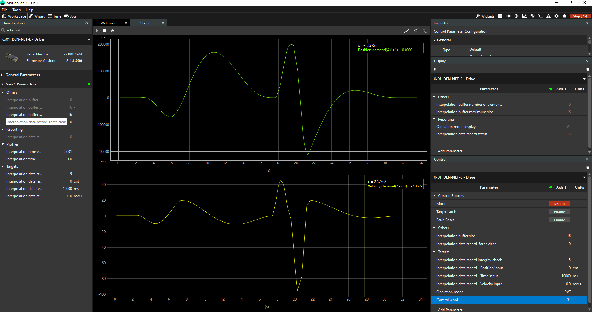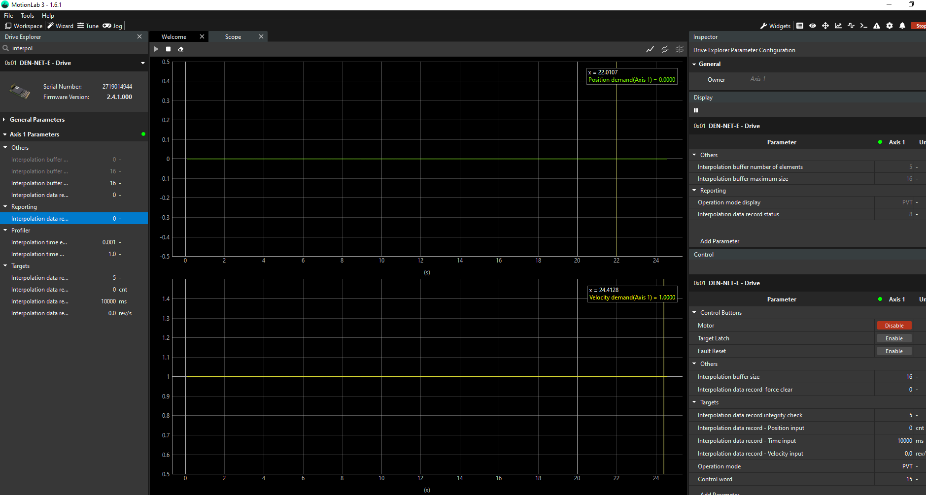 Once all the pre-configuration of the system has been finished, the following steps need to be followed in order to make the motor move using PVT