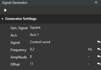 Click on Signal generator and configure the following parameters on the Signal Generator panel: