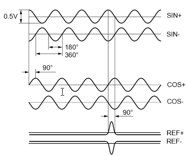 | REF+ | One sine half wave per revolution as index pulse | |