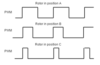 Next figure illustrates PWM feedback input for different rotor positions: