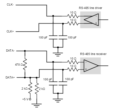 Circuit model for the absolute encoder receiver channels is shown in the next figure.