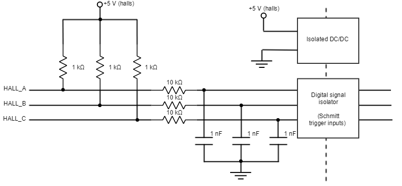 Next figure shows the circuit model of the digital Halls inputs.