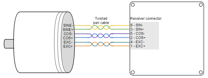 The following picture shows how to connect the resolver to the Titan Go servo Drive: